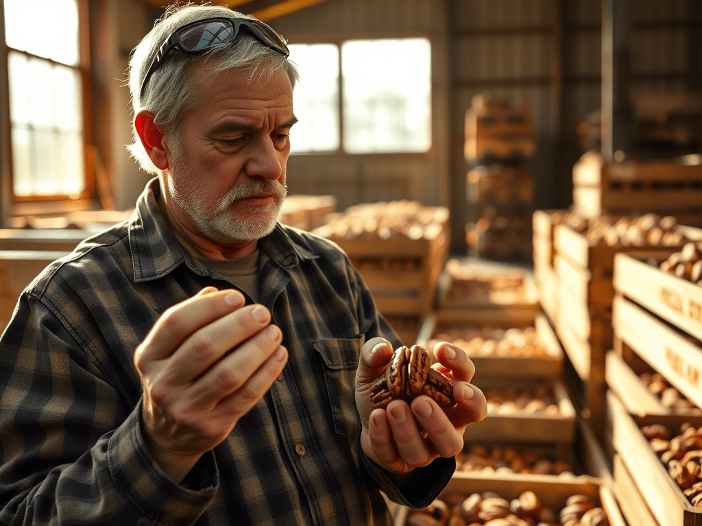 When I grew up in SW Georgia, I worked a few years for Walter Pollock & Sons. They owned a gas station, pecan groves, tobacco fields, a grainery and several other businesses. Mr. Pollock was quite the entrepreneur. During pecan season I was often working in the warehouse where we received pecans. I had to know how to recognize the different varieties and grade (or judge) them to offer the seller a price. I can still recognize some of those varities.