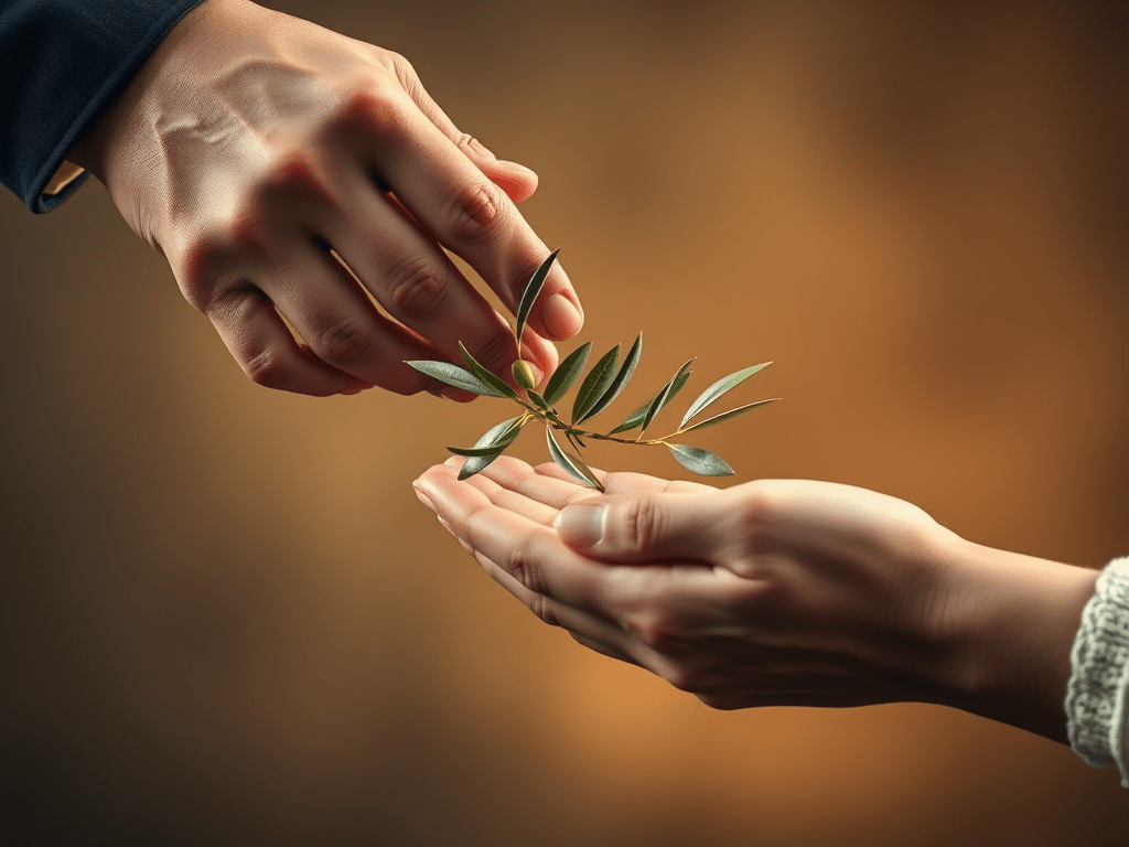 What does it take for enemies to become friends? It’s really pretty simple – one of them has to hold out the “olive branch.” By that I mean, one has to make the first step towards peace. Sometimes that is done because there has been a battle and the end seems certain. For instance, Germany made peace with the U.S. at the end of World War II because they saw they had been defeated. The U.S. desired to end the hostilities in order to save lives and bring lasting peace. But they had to accept the offer of peace to end the war.